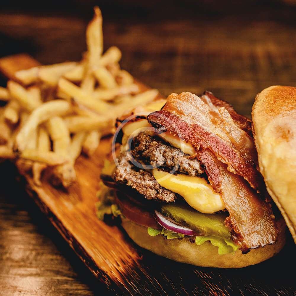 Made with beef patty, bacon, onions, grilled cheese, pickles and fries.